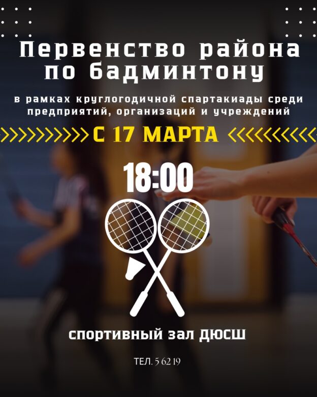 🏸Первенство района по бадминтону стартует с 1️⃣7️⃣ марта, начало соревнований в 18.00.